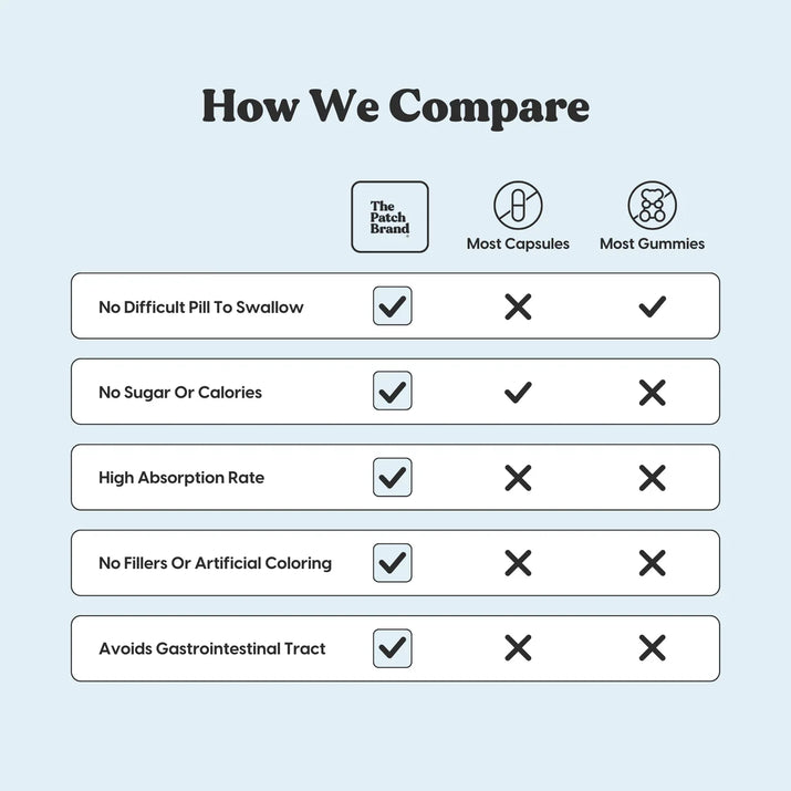 Experience unmatched wellness with our innovative patches that deliver essential nutrients effectively, ensuring optimal absorption without the need for pills or sugars, for a healthier, balanced lifestyle.